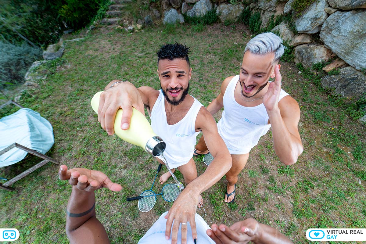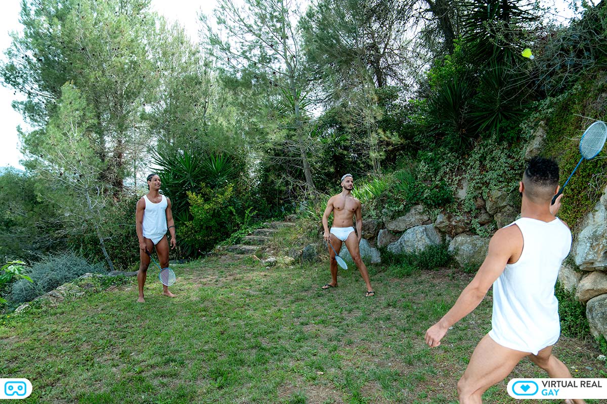 Panterino, Radzzo, and Stallion Fabio were sweating profusely as they played a round of intense badminton on this scorchingly hot day. While trying their hardest to stay focused on the game at hand, the trio also took breaks to playfully tease each other and engage in some friendly competition. As the heat started to get to Panterino, he expressed his desire to take a break and cool down. However, Stallion quickly swooped in and tried to sway Panterino’s attention by complimenting his skills and playfully asking who was the best player out of the three of them.