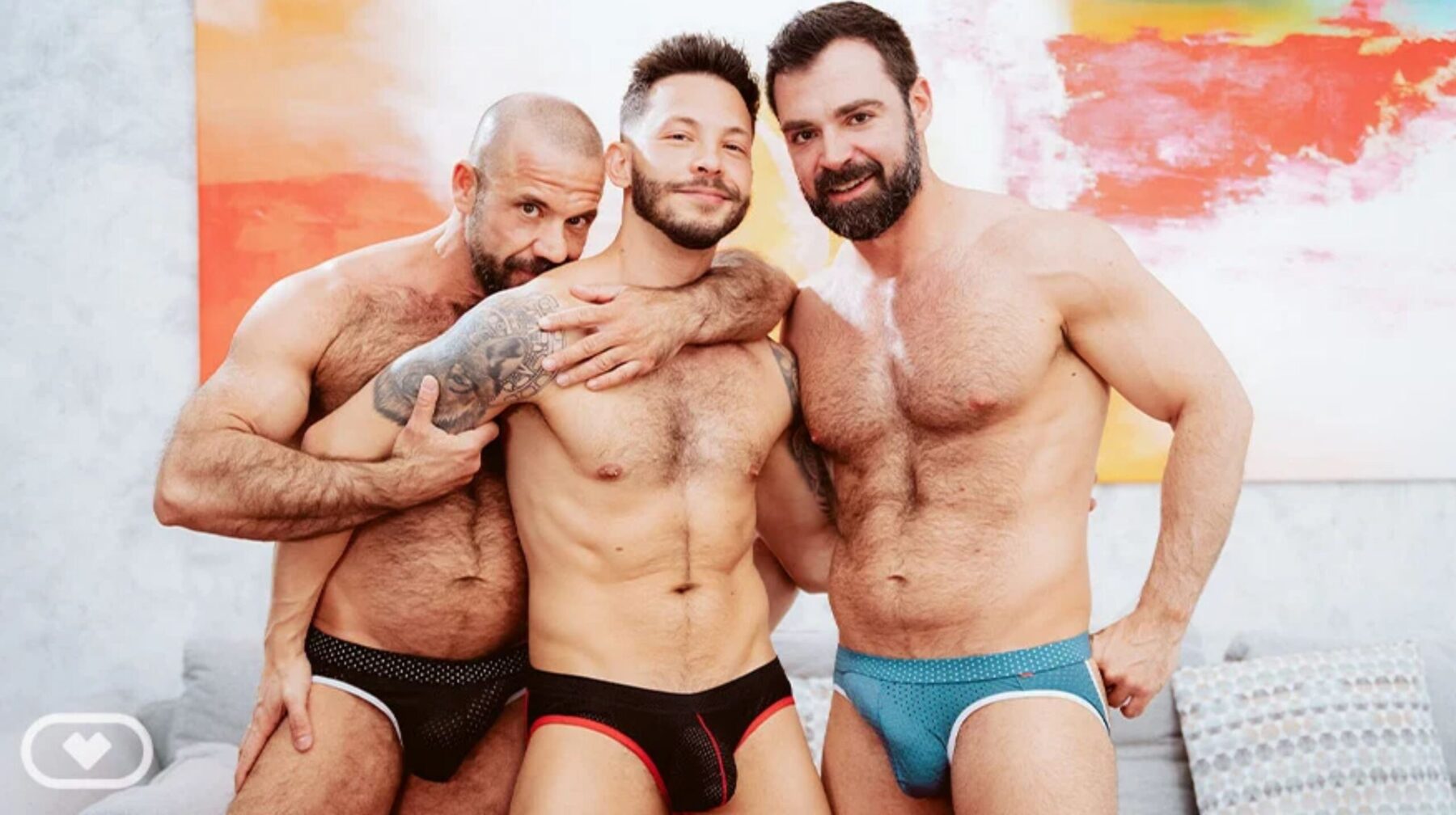 Your hunk shaven headed boyfriend Felipe Ferro gets tired sometimes with your addiction to video games. So when you are once again playing on your console instead of fucking him, he has a sexy plan to distract you. He invites his Spanish stud boyfriend José Quevedo to the apartment you share together, and proceeds to make out with him, right in front of you. Of course it distracts you from your video game. You feel intense jealousy when you see the guy start to give your boyfriend a blowjob, sucking him off even better than you can. And at the same time, you feel your dick expanding in your pants. There’s no doubt Felipe is a hunk, and if your boyfriend can fuck him right in front of you, you’re going to grab a piece of his hot ass too! Both guys are pleased that they have finally cured you of your video game addiction, and both start to lick and suck your lucky cock…