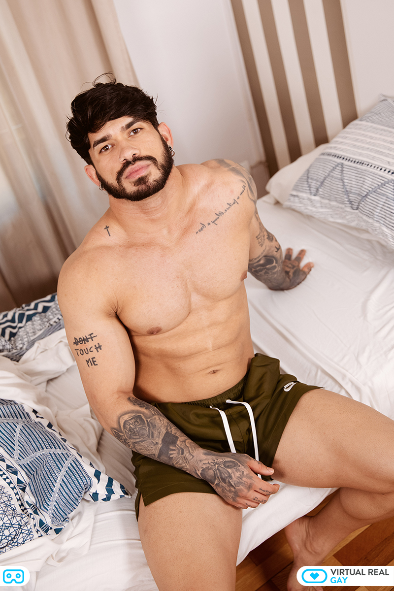 You put on your VR headset and wake up in virtual reality in bed alongside bearded gay hunk Pietro Duarte. He is your partner, and when he sees you looking at him, he starts to talk dirty to you in the hope you are going to get an erection and want to fuck him. Pietro loves to be fucked first thing every morning, and I’m sure you wont need a second invitation when you are lying in bed with this muscled stud. He sees that you have morning wood, just like him, and so he gets on his knees to deliver you a sloppy blowjob. You are in ecstasy, but something even better is about to happen. The handsome young Latino bends over and offers up his tight ass for you. He wants you to fuck him balls deep as hard and fast as you can!