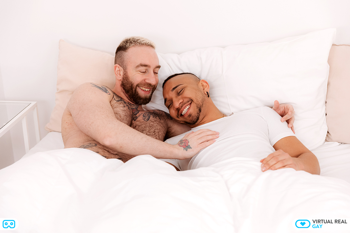 You put on your VR headset, and you will wake up after a night’s sleep, next to a muscled stud with tattoos all over his tight body. Manuel Scalco is still dozy, but you can’t keep your hands off of him. Now his dick is getting as hard as yours, and he feels more awake, and ready to fuck. First the takes your throbbing cock into his mouth, and begins to suck greedily at it, coating the entire length with his saliva, and stopping only to lick your penis head. All the while, he is shuffling his cock with his hand, as it approaches full erection. Next, he mounts your lucky dick with his tight ass, and begins to fuck you cowboy style. It’s going to be a wild ride from here on in, ending only when both of you have emptied your nut sacks and splashed each other’s faces with your sperm.