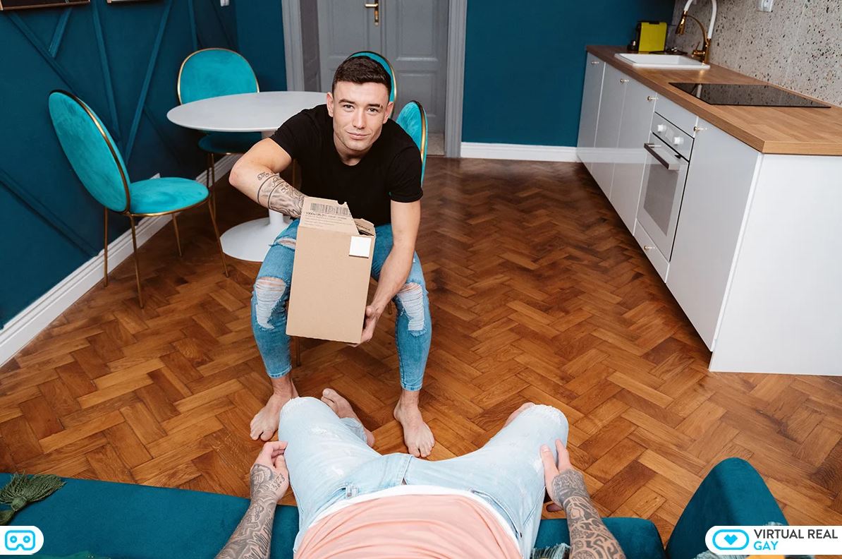 Handsome young gay porn stud Simon Best is so pleased with the sexy gift you got him in the Black Friday sales, that he’s going to let you bang his tight ass in multiple positions – including on your coffee table! When he opens the package you had delivered online, his eyes light up and a big grin spreads across his face. You bought him an anal dildo, and the dude is so happy that you bought the perfect gift for a horny stud like him. But however much he likes to use sex toys on his ass, he always prefers a hard dick if one is available. He wastes no time in getting down on his knees, unzipping your pants, and wrapping his tongue around your cock as he begins to give you a passionate and sloppy blowjob. Your dick is getting so freaking hard, now is the time for you to start stretching that tight ass of his that you’ve lusted after for so long. He mounts your hard pole and expertly slides up and down, giving you the best cowboy gay sex ride of your life. He can feel that your boner is raging hard, so decides to climb off your cock and become totally submissive, letting you bang his ass balls deep in a variety of positions, including missionary on your coffee table. Finally, just before you are ready to blow your wad, he gets on his knees again to lick and suck your cock into ejaculating your sperm deep down his cum thirsty throat!