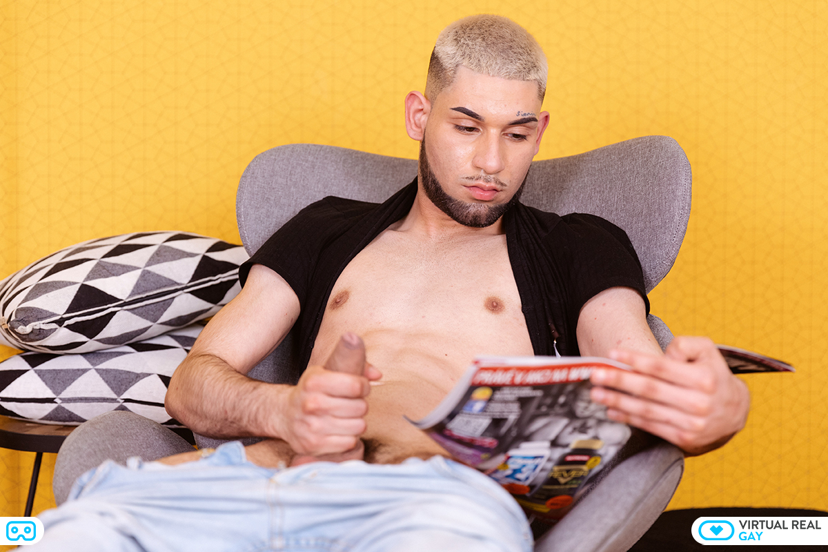 A hot teenage twink is reading a fitness magazine when he finds himself getting aroused by the sexy pictures of the buff bodybuilders. This dude thought he was straight, but as he looks at the glossy photos of the chiselled studs, he cannot deny that his tender young cock is getting stiff. He reaches inside his jeans and boxer shorts, and pulls his teenage dick out, and then begins to stroke it. He imagines how good it would be to have his hard cock inside the asses of these men. They are so strong and so powerful looking. He would like to get on his hands and knees and let these muscle men slide their big cocks deep into his own twink ass, pounding him until they explode their sperm inside him and on to his cute young butt cheeks. He strokes his cock ever more furiously until at last rich, gooey twink semen erupts from it and showers his belly with milky droplets. He lies back, relaxed and content, dreaming of all the gay sex he is going to enjoy over the next few years of his life.